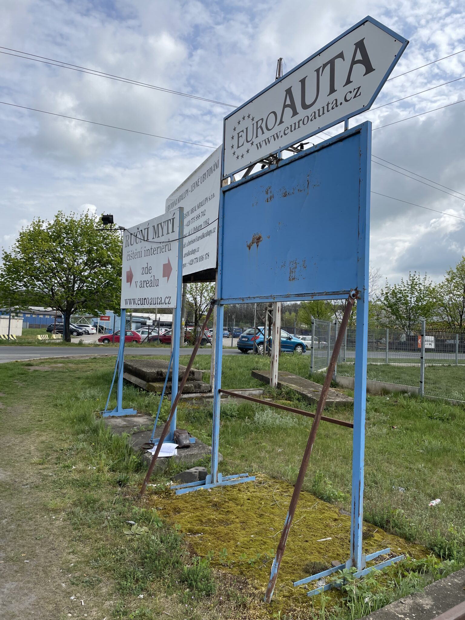 V září jsme vyrobili a přivařili nový rám na billboard na základ starého vozíku klienta a udělali z něj tak efektivně pojízdný billboard.