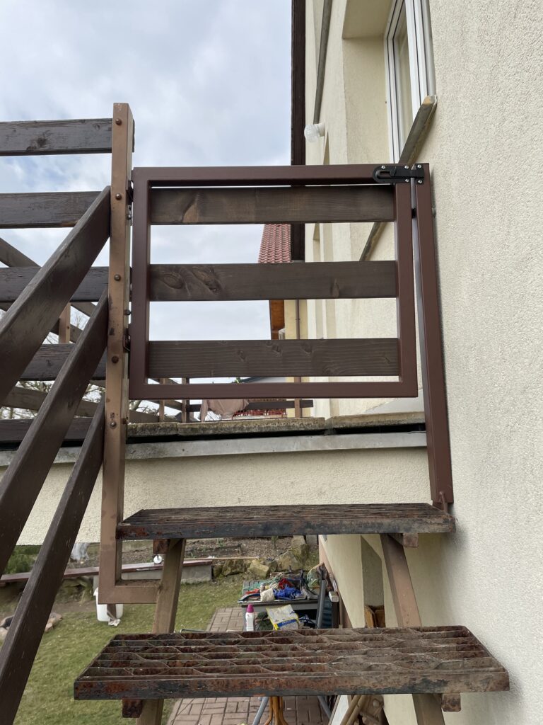V březnu 2025 jsme zhotovili ocelovou branku k plotu balkónku u domu ve Vyžlovce.