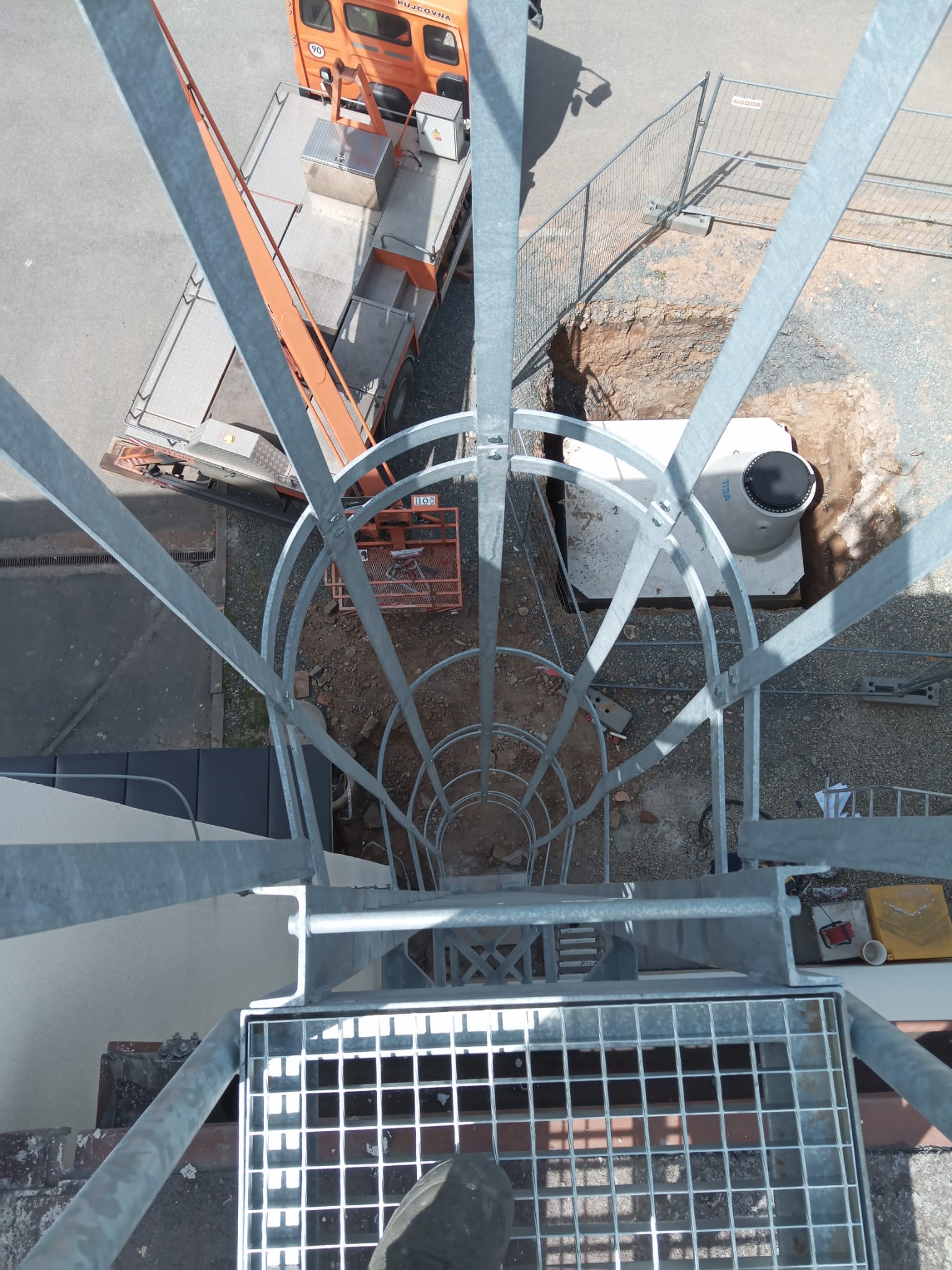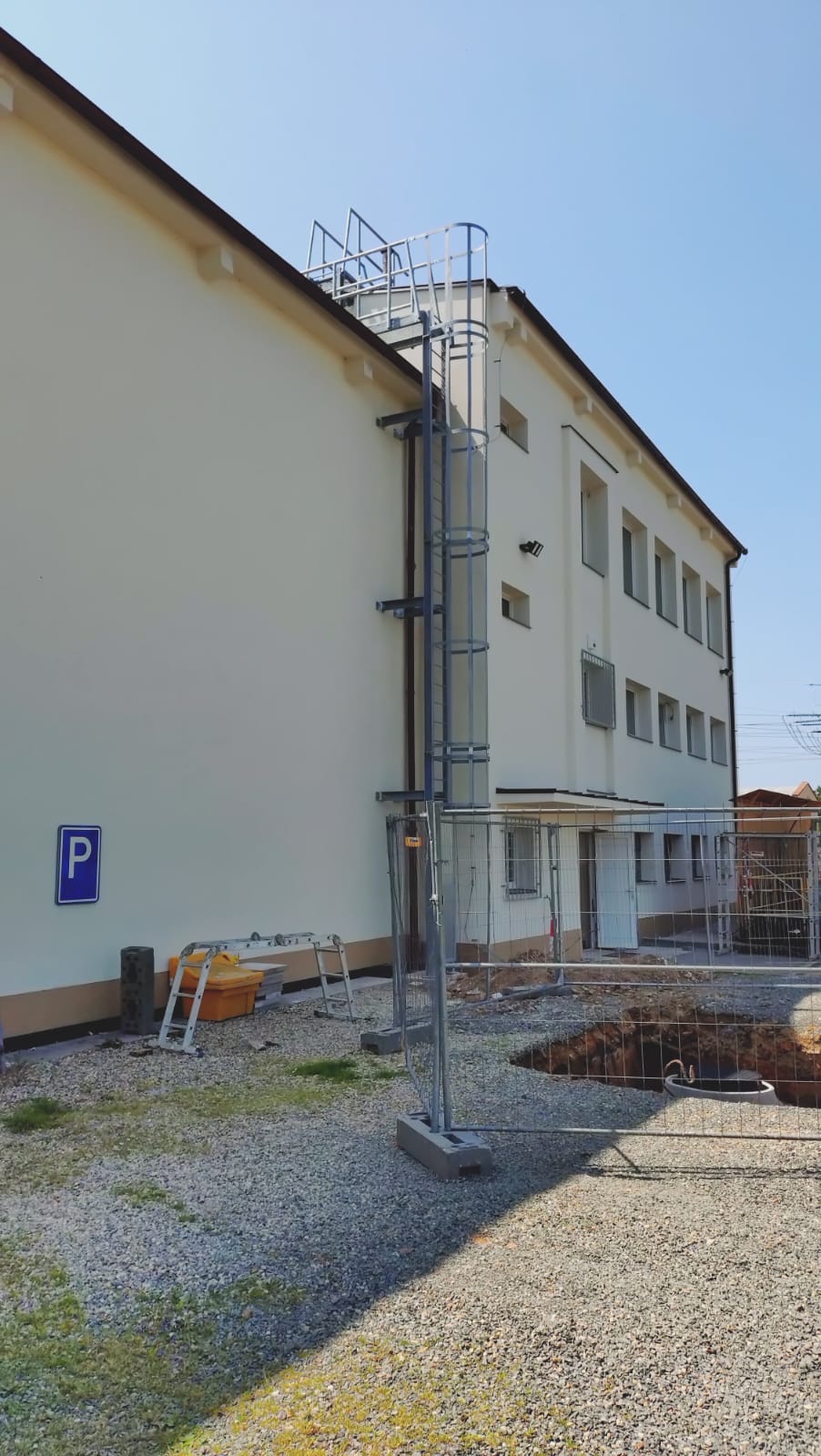 V červnu 2025 jsme vyráběli a následně instalovali žebřík k budově Energonu v Kladně.